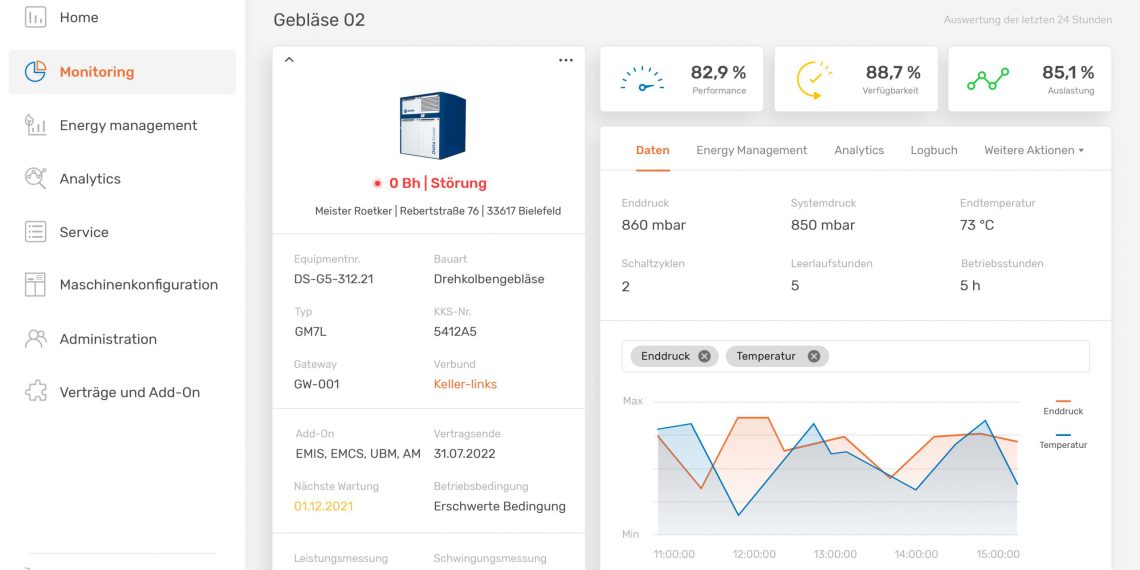 Aus Sicht des Betreibers ist der Wandel hin zu vernetzten Verdichter- und Gebläseaggregaten gleich in mehrfacher Hinsicht attraktiv. Zum einen erlaubt die umfangreiche Erfassung und Auswertung energiebezogener Prozessdaten die effiziente Steuerung der Aggregate im Verbund – dadurch können Energiekosten und CO2-Emissionen spürbar gesenkt werden. Zum anderen profitieren Betreiber von mehr Prozesssicherheit, Transparenz und Zuverlässigkeit. Die Erfassung aller relevanten Betriebsdaten gibt Aufschluss über die Abläufe rund um den Verdichtungsprozess. Diese Informationen können genutzt werden, um moderne und datengestützte Wartungs- und Instandhaltungskonzepte zu realisieren. Der Vorteil: Durch die zustandsbasierte Wartung und Instandhaltung der Anlagen werden Störfälle reduziert und Stillstandzeiten minimiert.