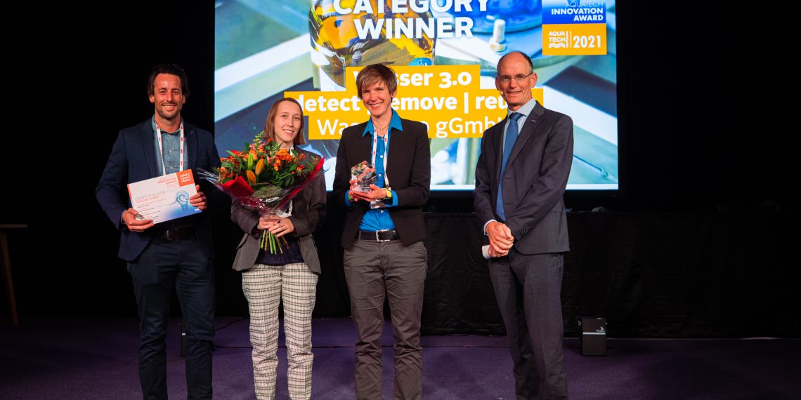 Mit den Aquatech Innovation Awards werden Innovationen und Technologien von Weltrang ausgezeichnet, die das Potenzial haben, den globalen Wassermarkt voranzubringen. Insgesamt wurden 12 innovative Technologien aus über 50 Einsendungen von einer Expertenjury nominiert. Die Kriterien waren Originalität, Praktikabilität und Nachhaltigkeit. Die Organisation ist Gewinner der Kategorie Green Chemicals for Water. Die Chemie, die die Grundlage für die Entfernungstechnologie von Wasser 3.0 ist, faszinierte die Jury Mitglieder. “Man kann sehr kleine Partikel sehr effizient entfernen”, so die Begründung der Jury.