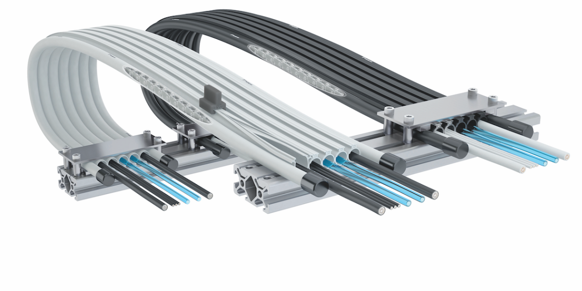 Die neue Lösung TSUBAKI KABELSCHLEPP von FLATVEYOR ZP kombiniert die Vorteile eines Flachkabelsystems mit der Struktur einer Energieführungskette. Anwender profitieren von einem einfachen Austausch von Leitungen. Zudem können vorhandene Leitungen und Schläuche eingesetzt werden, was in einer Kostenreduzierung und mehr Nachhaltigkeit in der Beschaffung resultiert.