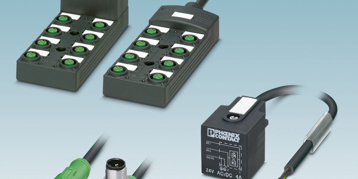 Mit den uni­ver­sell ein­setz­ba­ren M12 Ver­tei­ler­bo­xen von Phoe­nix Con­ta­ct las­sen sich auch Aktor-Steck­ver­bin­der, zum Bei­spiel für Magnet­ven­ti­le, schnell und ein­fach anschließen.