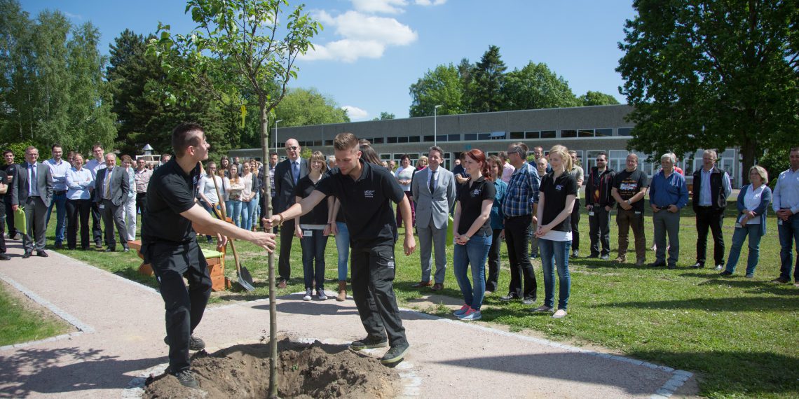 Ein ganz besonderes Format hat die LMT Group mit ihrem Azubiprojekt im Jahr 2015 ins Leben gerufen. Dabei bekommen die Auszubildenden am Standort Schwarzenbek die Möglichkeit, ein eigenständiges Unternehmensprojekt zu planen und umzusetzen. Den Auftakt machte das Projekt Green LMT. Die Auszubildenden des Lehrjahrs 2013 gestalteten dabei eine mehr als 3.000 Quadratmeter große Grünfläche auf dem Firmengelände neu. Das Ziel: einen attraktiven Ort zu schaffen, an dem sich Mitarbeiterinnen und Mitarbeiter gern aufhalten und der auch für firmeninterne Veranstaltungen genutzt werden kann. Die LMT Group stellte das Budget. Ideenfindung, Planung, Kalkulation und Namensgebung übernahmen die Auszubildenden. Seit Sommer 2015 spenden nun frisch gepflanzte Bäume Schatten, wenn die Kollegen während ihrer Pause auf einer der neuen Bänke sitzen. Über ein kreatives Highlight freut sich LMT Group CEO Olaf J. Müller dabei vor allem: „Für den Grill auf der Grünfläche haben sich unsere Azubis etwas ganz Besonderes einfallen lassen. Sie haben das Gehäuse einer ausgemusterten Tablettenpresse kurzerhand umfunktioniert und einen Grill integriert. Das spiegelt die Kreativität und den Schwung unserer Nachwuchskräfte wider und bestätigt uns, wie wichtig die Ausbildung für das Unternehmen ist“, so Müller.