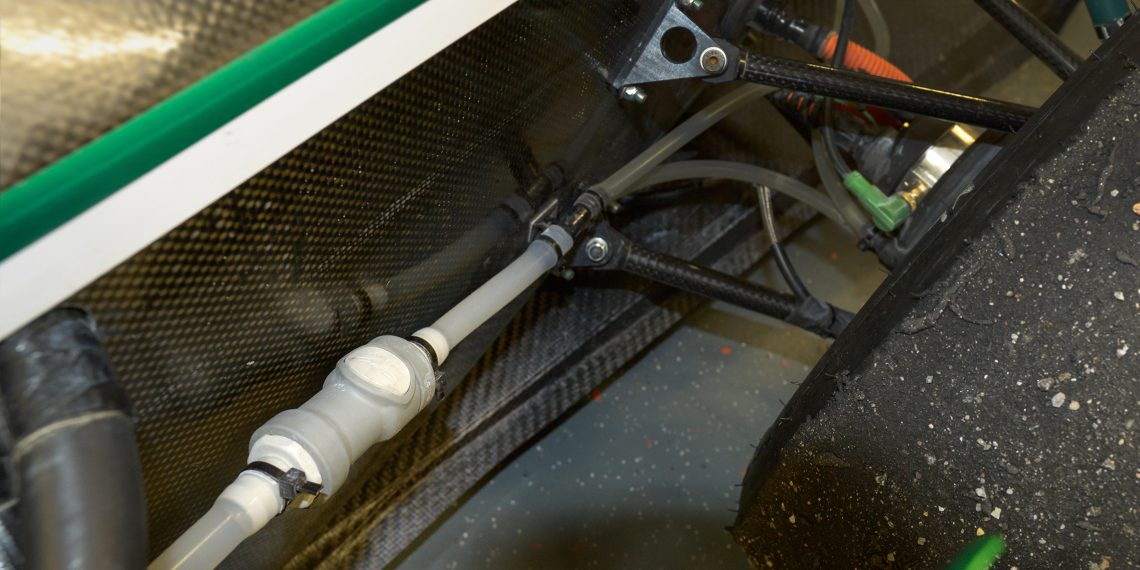 Der E0711-12 ist ein Elektrorennwagen. Der mit extremer Beschleunigung auch fahrerlos um den Parcours sausen kann. Entwickelt von einem Studenten-Team der Universität Stuttgart handelt es sich um das aktuelle Rennmodell der laufenden Saison 2021/2022. Verbaut ist im Boliden eine ganze Menge Carbon. Natürlich der Akku nebst Elektromotoren für den rein elektrischen Antrieb des nur 183 Kilogramm schweren E0711-12. Dazu eine ganze Menge Technik: von Lasern für die Detektion des Umfelds auf der Rennstrecke bei fahrerlosem Betrieb über Bremsen, Getriebe und Software bis hin zu den notwendigen Kühlkreisläufen. Und genau hier kommt Wolftechnik ins Spiel. Wolftechnik unterstützt die ambitionierten Projekte des GreenTeams der Universität Stuttgart bereits seit vielen Jahren finanziell und mit Know-how. Stellt den Studenten kostenfrei CPC Schnellkupplungen zur Verfügung. Die Kupplungen sorgen im Rennwagen für eine sichere Verbindung unterschiedlicher Kühlkreisläufe. Für ein schnelles Befüllen und Entlüften sowie ein Ausbauen von Komponenten ohne Flüssigkeitsverlust. „Emissionsfreie elektrische Antriebssysteme und autonomes Fahren sind wichtige Zukunftsthemen. Als innovatives und zukunftsgerichtetes Unternehmen freuen wir uns, dass wir diese Entwicklung als Sponsor unterstützen können“, betont Wolftechnik-Geschäftsführer Peter Krause