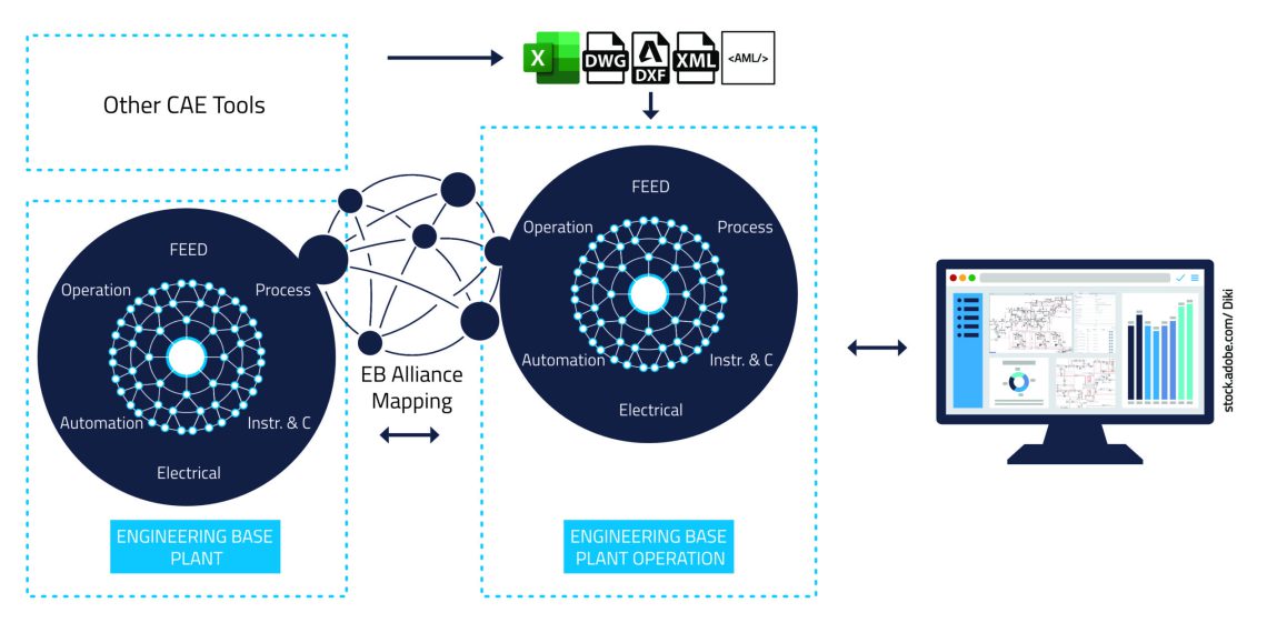 „Das Austauschen von Daten verschiedener Parteien, die das gleiche System nutzen, wird in der Regel dadurch verkompliziert, dass sie unterschiedliche Versionen und Konfigurationen einsetzen. Das wird künftig anders“, erklärt Aucotecs leitender Produktmanager Dr. Pouria Bigvand. Beim Datenimport von einem EB nutzenden Lieferanten lassen sich mit EB Alliance alle Daten auf den Konfigurationsstand des Empfängers mappen, sodass Fehler oder Missverständnisse gar nicht erst entstehen. Und das Übergeben des digitalen Zwillings einer um- oder auszubauenden Teilanlage, ebenso wie nach getaner Arbeit seine konsistente Integration in den neuen As-built-Stand, wird auch Umbauprojekte deutlich beschleunigen. „Die ‚Alliance‘ soll in den anwendenden Unternehmen EBs Rolle noch weiter stärken, als Autorensystem und Data Repository DIE Drehscheibe für Engineering Technology (ET) zu sein und damit IT und OT optimal zu unterstützen“, sagt Bigvand und betont:
