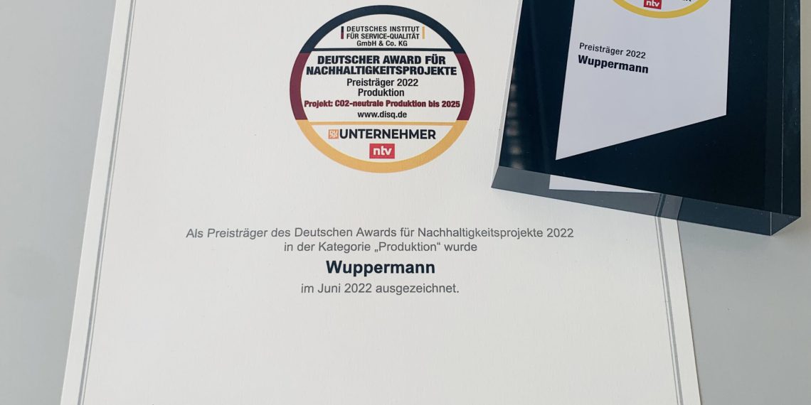 Wuppermann, ein Traditionsunter-nehmen in der Stahlindustrie, gehört zu den Preisträgern des “Deutschen Awards für Nachhaltigkeitsprojekte 2022” in der Kategorie „Produktion”. Der Preis wurde in Berlin am 9. Juni 2022 zum zweiten Mal von dem Nachrichtensender ntv, dem Dup Unternehmer Magazin und dem Deutschen Institut für Service-Qualität vergeben. Schirmherrin des Awards war Brigitte Zypries, Bundesministerin a.D. Der Preis wurde von Daniel Ewen, Business Development, Wuppermann AG, entgegengenommen.