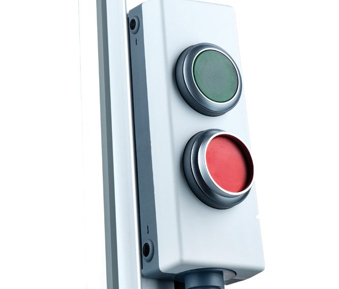 Die E‑BOX kann mit Not-Halt,- Drucktastern, Leuchtvorsätzen, Schlüsselschaltern oder Wahlschaltern bestückt werden. Sie ist, je nach Anwendung, mit gelbem oder grauem Gehäuseoberteil in verschiedenen Varianten erhältlich: Als „E‑BOX Modular“ für die PG-Kabeldurchführung oder „E‑BOX M12“ mit Plug-and-Play M12-Anschluss. Die E‑BOX M12 ist in Schutzart IP65 ausgeführt und für den zuverlässigen Einsatz in einem Temperaturbereich von ‑25 Grad Celsius bis +70 Grad Celsius ausgelegt. Als Betätiger sind unter anderem beleuchtbare Drucktasten, zum Beispiel mit roten und grünen Blenden für Ein-/Aus-Schaltvorgänge oder mit grauen Pfeil-Applikationen für Hebe- und Absenkbewegungen erhältlich. Zudem sind Modelle mit nur einem Not-Halt, einem Drucktaster oder Kombinationen verfügbar.1313