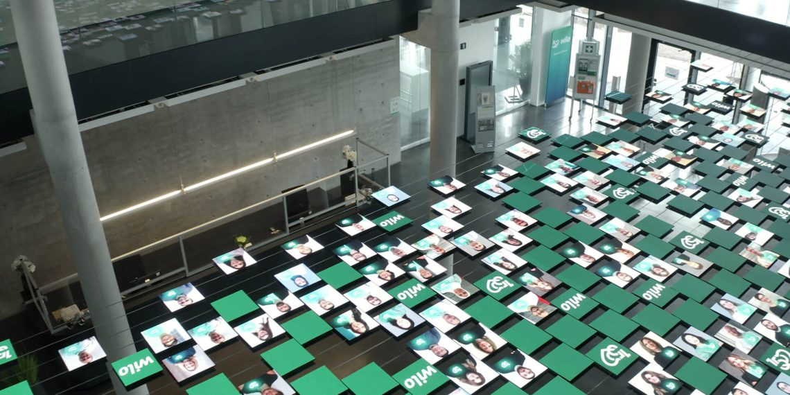 Die LED-Instal­la­ti­on „Wilo Con­nec­ted“ im Haupt­sitz des mul­ti­na­tio­na­len Tech­no­lo­gie­kon­zerns Wilo hat den renom­mier­ten Red Dot Design Award in der Kate­go­rie „Brands & Com­mu­ni­ca­ti­on Design 2022“ gewon­nen. Das zir­ka 60 Qua­drat­me­ter gro­ße Decken­se­gel im Foy­er des Pioneer Cube besteht aus 401 dop­pel­sei­ti­gen LED-Ele­men­ten, die im Zusam­men­spiel ver­schie­de­ne ani­mier­te Bild- oder Film­se­quen­zen zei­gen kön­nen. Neben dem Fir­men­lo­go und Mit­ar­bei­ter­por­traits ist eine Film­se­quenz des Ruder­boots Deutsch­land-Ach­ter ein zen­tra­les, wie­der­keh­ren­des Motiv der Kunstinstallation.