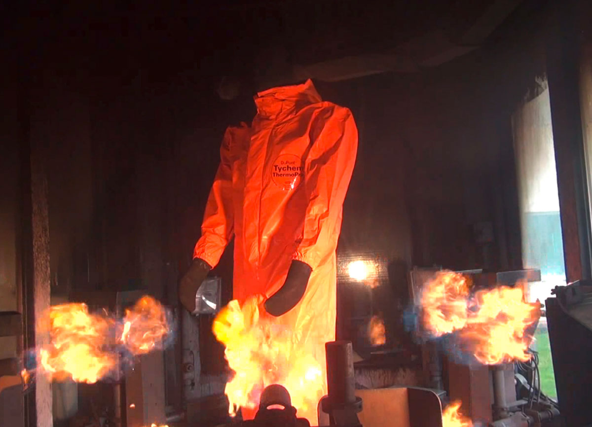 Tychem ThermoPro wurde Permeationstests mit mehr als 240 Chemikalien unterzogen. Dabei war bei 175 Substanzen auch nach 480 Minuten kein Durchbruch zu verzeichnen. Die Tests haben auch gezeigt, dass die Schutzkleidung mindestens acht Stunden lang Schutz gegen 19 der in ASTM F1001 gelisteten 21 Chemikalien bietet. Von der thermischen Schutzwirkung konnten sich die Messebesucher in simulierten Live-Brandtests mit dem DuPont THERMO-MAN überzeugen. Diese lebensgroße, mit 122 Thermofühlern ausgestattete Testpuppe ermöglicht die Bestimmung des Schweregrads, Ausmaßes und der Lage potenzieller Brandstellen in Schutzkleidung mittels simulierter Brandtests gemäß ASTM F1930. Tychem ThermoPro Schutzkleidung brennt nach Flammeinwirkung nicht weiter, so dass die Schutzwirkung intakt bleibt und dazu beiträgt, Brandverletzungen zu minimieren.