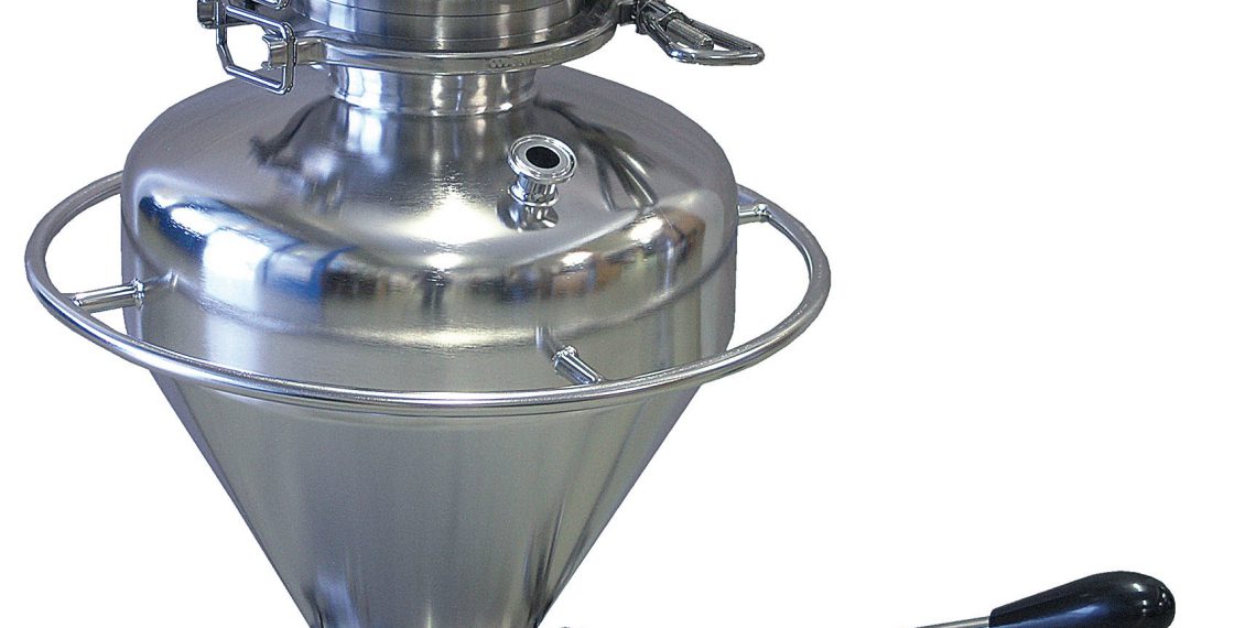 Das System besteht aus einem schüttwinkeloptimierten Zentralbehälter, welcher jeweils auf der Befüllungs- und Entleerungsseite mit Klappenventilen ausgerüstet ist sowie einem passenden Baukasten von Anbau- und Verschlussteilen (Tri-Clamp). Das Wirkstoffvolumen kann je nach Durchmesser von 2 bis 220 Liter betragen. Auf der Befüllungsseite können diverse Adapterelemente wie Trichter oder inertisier- und sterilisierbare Adapterstücke montiert werden. Das gilt ebenfalls für den Auslauf. Wobei die hohe Qualität mit der 0berfläche, RA < 0,25 Mikrometer von allen prozessseitigen Oberflächen für eine effiziente und optimale Entleerung sehr wichtig ist. Somit ist das System adaptierbar zum Beispiel auf einen Reaktor, einen Ansatzbehälter oder z.B. eine Tablettenpresse. Befüllen und Entleeren unter Schutzatmosphäre (Glove-Box) oder Vakuum ist möglich.