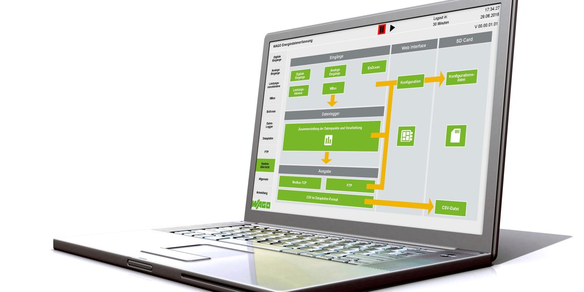 Die Weitergabe der Daten an eine übergeordnete Energiemanagementsoftware erfolgt über Modbus TCP/IP oder als CSV-Datei über FTPS. Zusätzlich ist es möglich, den historischen Verlauf auf SD-Karte zu speichern. Die leichte und flexible Anbindbarkeit der neuen WAGO-Lösung an bestehende Infrastrukturen und Managementsysteme erlaubt es Unternehmen mit bestehendem Energiemanagement auf einfachem Wege ihre Messstellentiefe zu erhöhen.
