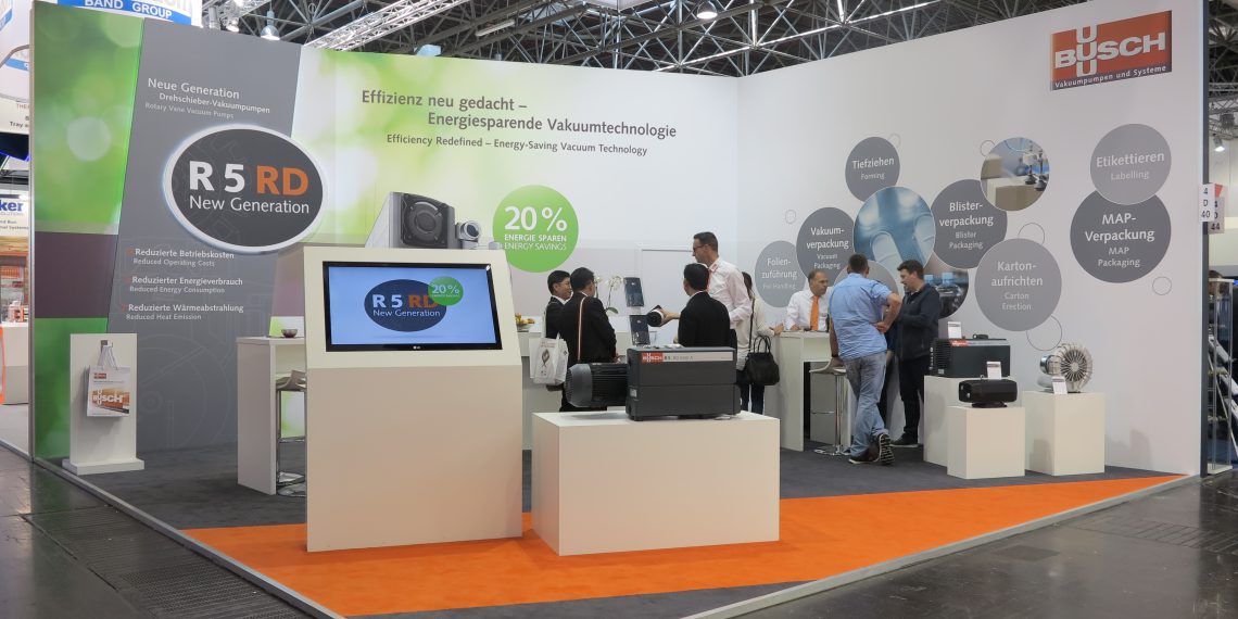Besonders beindruckt zeigten sich die Besucher aus 44 Ländern von der neuesten Generation von R 5 Drehschieber-Vakuumpumpen, mit der Busch speziell bei Anwendungen im Bereich der Vakuumverpackung neue Standards setzt. Durch wesentliche technische Optimierungen verbraucht die neue Baureihe R 5 RD 20 Prozent weniger Energie als vergleichbare Vakuumerzeuger. Und dies ohne jegliche Zugeständnisse an Zuverlässigkeit oder Robustheit der Vakuumpumpe. Zusätzlich zu diesen signifikanten Energieeinsparungen können mit dieser neuen Vakuumpumpe auch kürzere Verpackungszyklen beziehungsweise Taktzeiten realisiert werden.