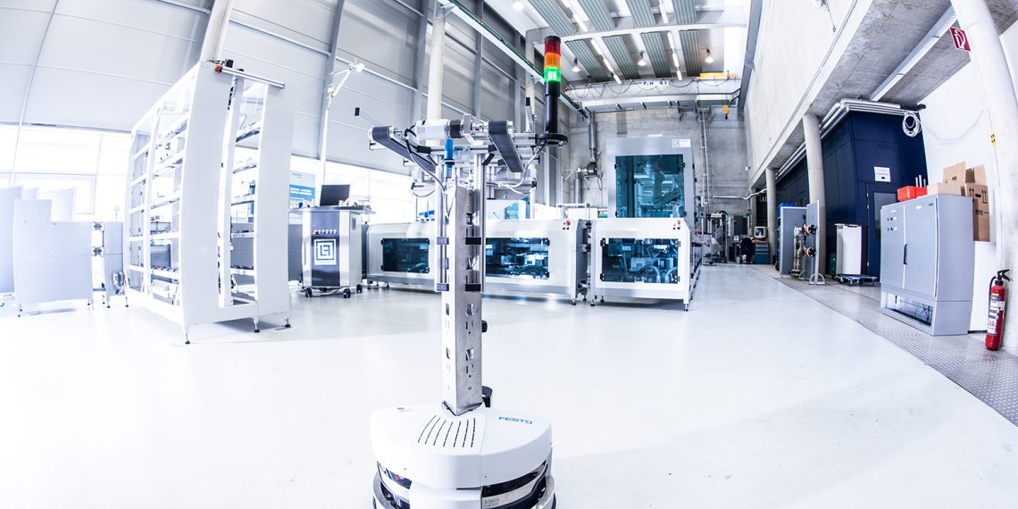 Im Ent­wick­lungs­feld „Digi­ta­li­sie­rung der Wert­schöp­fung“ sehen Besu­cher bei­spiels­wei­se, wie sämt­li­che Maschi­nen und Anla­gen über eine IT-Schnitt­stel­le an die Cloud ange­bun­den wer­den. Eine Mixed-Rea­li­ty-Bril­le zeigt ihnen echt­zeit­nah Maschi­nen­da­ten auf einem vir­tu­el­len Dash­board an. Für die Stu­fe „Die auto­no­me Pro­duk­ti­on“ haben die For­scher wie­der­um ein Anwen­dungs­sze­na­rio ent­wi­ckelt, bei dem sich fah­rer­lo­se Trans­port­fahr­zeu­ge auto­nom in der Pro­duk­ti­on bewe­gen. Als Teil einer Edge-Cloud-Archi­tek­tur nut­zen die Wagen situa­ti­ons­an­ge­passt loka­le oder zen­tra­le Rechen­leis­tung. Weil sie eine geteil­te Kar­te in der Cloud haben, kön­nen sie sich gegen­sei­tig aus­wei­chen und ihre Rou­ten selbst­stän­dig anpassen.