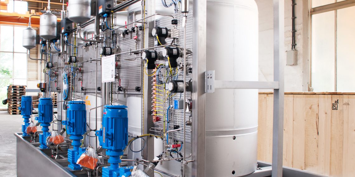 Die fluidberührten Teile sind aus 1.4404‑, 1.4571- und 316SS-Stahl, PTFE, Perfluorelastomer beziehungsweise Glas gefertigt, um die Anforderungen, zum Beispiel aus dem DVGW-Arbeitsblatt G 280–1 für Odorieranlagen zu gewährleisten. Vor Wartungsarbeiten lassen sich die Pumpenköpfe sowie die Saug- und Druckleitung über vier Spülvorrichtungen reinigen. Eine in Anlehnung an die Stahlwannenrichtlinie geprüfte Wanne unter den Behältern fängt möglicherweise austretendes Odoriermittel auf, um eine Verunreinigung des Grundwassers zu verhindern. In den Belüftungsleitungen der Behälter befinden sich als Geruchssperre Aktivkohlefilter einschließlich eines Drei-Wege-Hahns für den Anschluss einer Pendelleitung. Zwischen den Behältern und den Aktivkohlefiltern sind in der Entlüftungsleitung zum Schutz vor Explosionen außerdem drei Flammschutzfilter eingebaut.