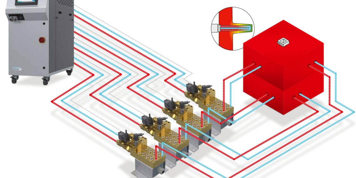 Als Ergänzung zu den bewährten Temperiergeräten und Verteilersystemen von REGLOPLAS für Druckwasser und Öl erhält der Kunde eine komplette Temperierlösung für seine Druckgiessmaschine aus einer Hand, inklusive der Software zur Überwachung des Gesamtsystems und mit weltweitem lokalem Support und Service. Flexibel, den Bedürfnissen angepasst Das REGLOPLAS-jetPulse-System bietet zwei Gerätegrössen (30 Liter oder 100 Liter) an. Pro Gerät können bis zu sechs multiJet-Verteiler mit je 8 Kanälen angeschlossen werden. Diese kühlen somit bis zu 64 einzelne Hotspots punktgenau, zuverlässig und zyklusgesteuert.