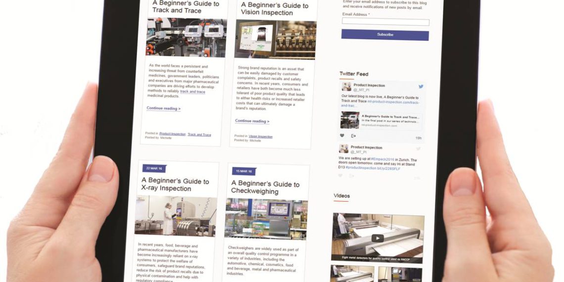 Damit Her­stel­ler bei der Aus­wahl von Inli­ne-Inspek­ti­ons­tech­no­lo­gien fun­dier­te Ent­schei­dun­gen tref­fen und jeder­zeit auf Tas­ten­druck hoch­ak­tu­el­le Daten abru­fen kön­nen, hat Mett­ler-Tole­do den „Blog Pro­dukt­in­spek­ti­on“ ins Leben geru­fen. Die­ser Blog soll Unter­neh­men aus der Lebens­mit­tel- und Phar­ma­bran­che regel­mä­ßig über Trends, News und jüngs­te Ent­wick­lun­gen in den Berei­chen Rönt­gen­in­spek­ti­on, Metall­such­tech­nik, Kon­troll­wä­gen und opti­sche Inspek­ti­on infor­mie­ren. Her­stel­ler kön­nen den Blog unter die­sem Link abon­nie­ren: www.mt-product-inspection.com