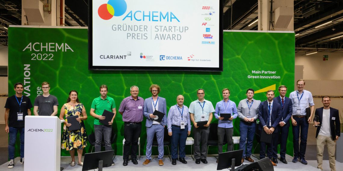 Um die­se zu stär­ken, hat­ten die Deche­ma, der High-Tech Grün­der­fonds und die Busi­ness Angels Frank­furt Rhein­Main mit Unter­stüt­zung des Pre­mi­um­part­ners Cla­ri­ant bereits zum drit­ten Mal den Ache­ma-Grün­der­preis aus­ge­schrie­ben. Aus über 30 Bewer­bun­gen, erst­mals auch aus dem Aus­land, hat­te eine Fach­ju­ry 10 Fina­lis­ten aus­ge­wählt, die sich auf der Mes­se in einer eige­nen Ses­si­on und in der Start-up Area prä­sen­tie­ren konnten.