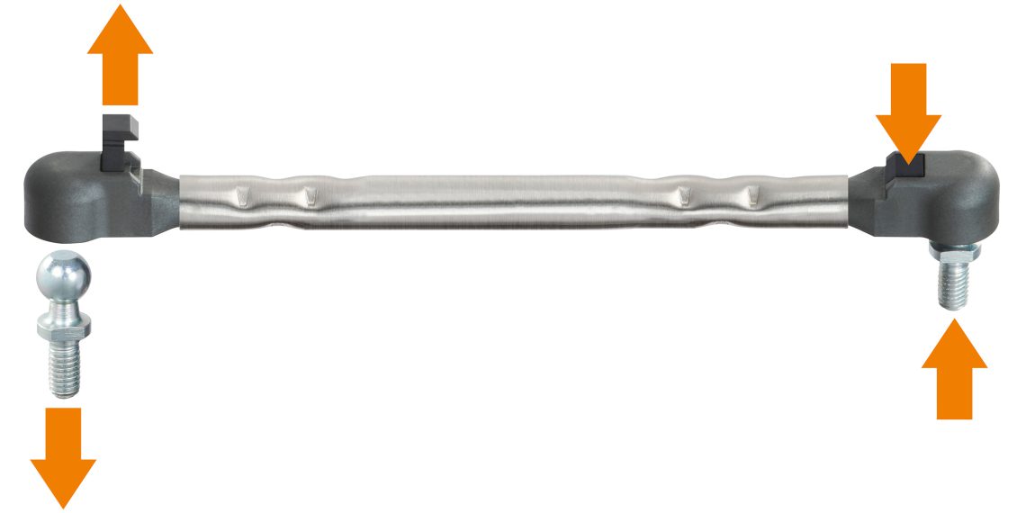 Häufig steht der Anwender vor der Aufgabe, seine Winkelgelenke schnell und trotzdem sicher zu montieren oder zu Wartungszwecken einfach zu demontieren. Die Prozessgeschwindigkeit wird zu einem entscheidenden Kostenfaktor, weil sie über die Stillstandszeiten der Anlage entscheidet. Das demontierbare Winkelgelenk ist die ideale Lösung. Ein einfacher Handgriff und ein paar Sekunden genügen, um den Kugelzapfen mittels Schraubendreher zu lösen. Das zylindrische Design des Gelenkschaftes mit seinen Aussparungen garantiert eine hohe mechanische Sicherheit beim Crimpen. Selbst bei mehrmaliger Demontage des Kugelzapfens wird die Haltekraft der Kugelzapfen (Kugelzapfen M6) nicht beeinträchtigt. Bis zu 300 N Haltekraft sind auch nach wiederholtem Öffnen und Schließen der Verbindung dauerhaft gewährleistet. Demontierbare Winkelgelenke sind als Variante auch mit M5 und M6-Innengewinde in Kombination mit Gewindestangen in kundenindividuellen Längen ab 80 mm erhältlich.