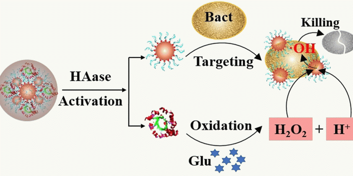 Durch die Hülle wuchsen nicht nur die Nanozym-Partikel um das Fünffache auf etwa 0,1 Mikrometer an (was ein Zehntel der Bakteriengröße ist), sie wurden auch stabil und hielten mindestens 30 Tage in Lösung ohne Veränderung durch. Außer zur Stabilisierung diente die Hyaluronsäurehülle noch einem weiteren Zweck: Bakterien geben Enzyme ab, die Hyaluronsäure zersetzen. Das bedeutet, dass die Bakterien das gegen sie gerichtete System selbst aktivieren, so der Gedankengang der Forschenden.