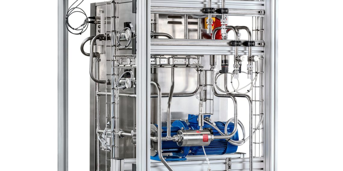 Die 1,1 x 0,8 x 2,1 m (L x B x H) große Anlage ist in verschiedene Ebenen gegliedert: Die erste besteht aus Grundgestell, Auffangwanne und Kühlwasseranschluss. Zur zweiten gehören Temperiergerät, Dosierpumpen, Messgeräte und Prozessanschluss. Die dritte setzt sich aus Schaltschrank, Bedienung und Schnittstellen zusammen. Alle Komponenten werden auf dem gemeinsamen Grundgestell montiert, das sich mittels Hubwagen bewegen lässt und eine durchgängige Edelstahl-Wanne zum Auffangen möglicher Leckagen beinhaltet. Alle Bauteile sind so angeordnet, dass die Anlage optimal zugänglich ist und sich einfach bedienen lässt. Die eigentlichen Systemkomponenten sind mit einer Wärmedämmung versehen, damit die Umgebungstemperatur keinen Einfluss auf die Fluidtemperatur und deren Gradienten hat. „Das ist eine unabdingbare Voraussetzung, um bei den dynamischen Wechseltests mit unterschiedlichen Prozesstemperaturen ein reproduzierbares Ergebnis erzielen zu können“, so Schwab.