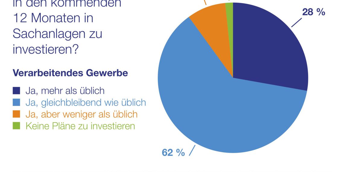 In Deutschland ist die Investitionsbereitschaft verarbeitender Unternehmen hoch: Immerhin mehr als jeder vierte Betrieb (28 Prozent) plant, innerhalb eines Jahres mehr als üblich in Sachanlagen zu investieren. Das ist das Ergebnis einer Umfrage des Finanzierungsspezialisten Close Brothers Asset Finance GmbH (CBAF) aus Mainz unter 200 Unternehmen der Branche. Weitere sechs von zehn Unternehmen (62 Prozent) möchten Ihre Investionen in Sachanlagen darüber hinaus auf dem üblichen Niveau beibehalten. In dieser Hinsicht weniger als üblich auszugeben planen nur 8,5 Prozent der Befragten.