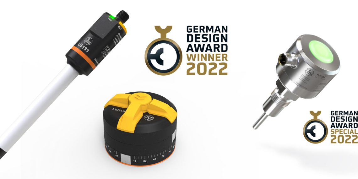 Bei der diesjährigen Ausgabe des German Design Awards hat ifm gleich dreifachen Grund zur Freude. In der Kategorie Industry konnten Produkte des Unternehmens gleich dreifach punkten. Der Füllstandsensor LI, der zuverlässig Grenzstände von Tanks und Behältern überwacht, wird als „Winner“ ausgezeichnet. Medienberührend misst er Wasser, Öle, Kühlschmiermittel und deren Temperatur. Eine induktive Taste lassen Nutzer und Sensor in Interaktion treten. Die 360 Grad LED informiert über den Füllstand der in den Tanks befindlichen Medien. Seine Form bietet gute Ablauf- und Reinigungseigenschaften. Der LI leistet unter hohen Anspruch in Gestaltung und Präzision seinen Beitrag zum wirtschaftlichen und nachhaltigen Betrieb der Anlage.