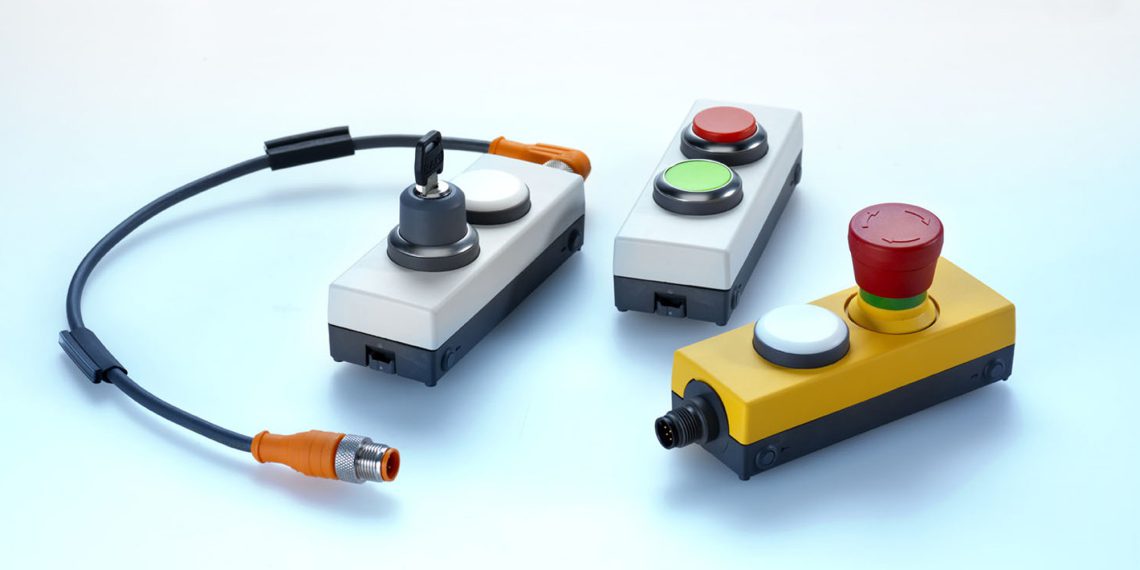 Es stehen Varianten mit je einem Not-Halt- oder Drucktaster, mit Not-Halt- und Drucktaster (bzw. Schlüsselschalter, Signalleuchte) sowie anderen 2er-Kombinationen aus Druck- und Wahlschaltern zur Verfügung. Durch den Anschluss erhalten Anwender eine einsatzfertige Befehlseinheit, die sich ohne Verdrahtungsaufwand direkt anschließen und in Betrieb nehmen lässt. Das Gehäuse ist mit seinen kompakten Abmessungen von 109 mm x 40 mm x 29 mm optimal zur Montage auf 40 mm-Profilschienen von Fertigungseinrichtungen oder Schutzzäunen geeignet.