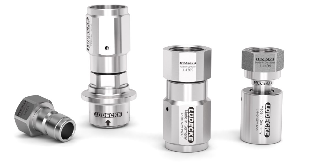Da für diese hohen Anforderungen keine entsprechenden Produkte am Markt verfügbar waren, entschied sich Wolf für eine Kooperation mit Altmann und Lüdecke. Die Firma Altmann betreut und beliefert Wolf schon mehrere Jahre als höchst kompetenter technischer Dienstleister. Mit dem Armaturenhersteller Lüdecke holte man sich ein umfassendes Know-how in der Entwicklung und Produktion hochwertiger Kupplungssysteme und Verbindungstechnik ins Haus. Nach einer umfangreichen Testphase konnte durch Altmann für die zwei Reinigungsschritte je ein geeigneter und besonders langlebiger Schlauch angeboten werden. Lüdecke konstruierte im nächsten Schritt die dazu passenden Armaturen.
