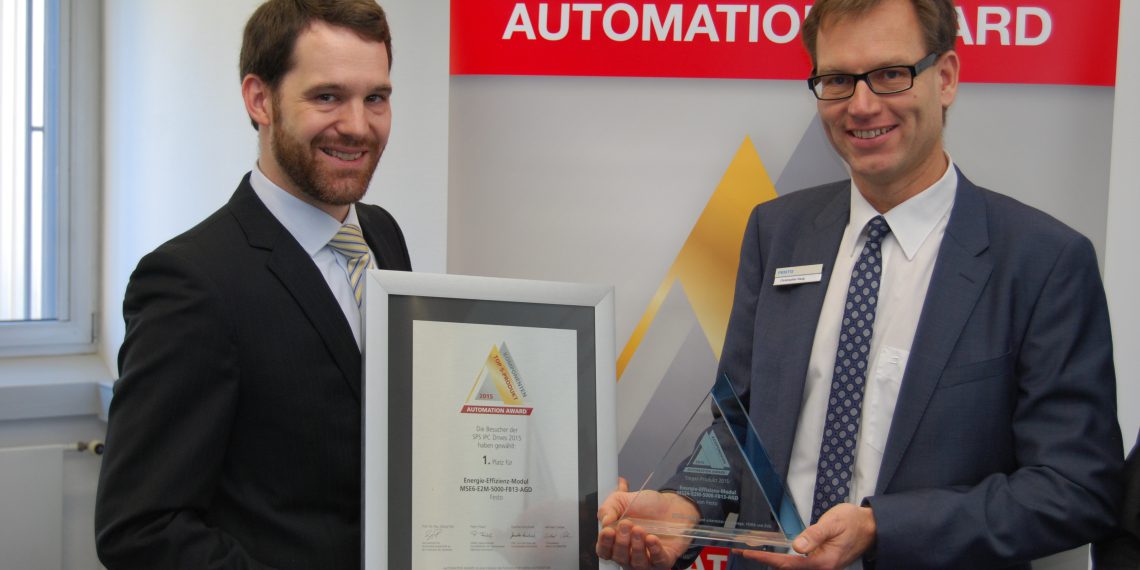 In der Kategorie „Standardkomponenten & Sensorik“ erreicht das Energie-Effizienz-Modul mit 45 Prozent der Stimmen einen deutlichen Vorsprung vor den weiteren nominierten Produkten Der Automation Award ist der bedeutendste Preis der Automatisierungsbranche. Eine Jury aus Wissenschaft, VDMA, ZVEI und Fachpresse nominiert vorab je fünf Produkte aus den Kategorien „Steuerungstechnik & Systemlösungen” sowie “Standard-Komponenten & Sensorik”. Aus diesen „Top5-Produkten” wählen die Besucher während der Messe ihre beiden Favoriten.