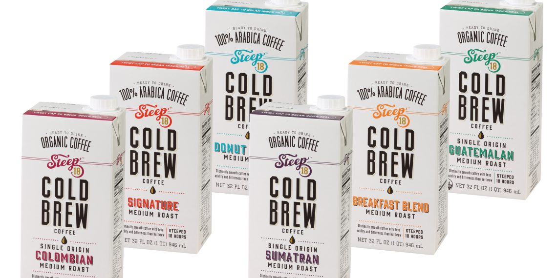 STEEP 18 Cold Brew Coffee liegt mit seiner umfangreichen Produktlinie aus kalt gebrühten Kaffeegetränken voll im Trend. Es kommen nur Zutaten von höchster Qualität zum Einsatz: 100 % Arabica-Kaffee, der für maximalen Wirkstoffgehalt und besten Geschmack 18 Stunden lang in Wasser angesetzt wird. Erhältlich sind die Variationen Breakfast Blend, Colombian, Donut Blend, Guatemalan, Signature und Sumatran. Alle Sorten werden in Zusammenarbeit mit Protenergy in combiblocSlimline-Packungen von SIG Combibloc verpackt.