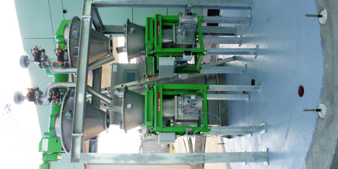 Die Abbildung zeigt eine für die Abwasserbehandlung konzipierte mechanisch Tara kompensierte, gravimetrische Dosierung mit zwei Differentialdosierwaagen vom Typ Gericke DIW50. Sie dosieren nach NAMUR 40 in einem Leistungsbereich von 2 bis 40 kg/h kontinuierlich, um eine effiziente Suspension zu erzeugen, welche dann in einem Kontaktbecken mit dem Abwasserstrom vermischt wird. Im Kontaktbecken werden die zu eliminierenden Stoffe adsorbiert. Anschliessend wird die beladene Pulveraktivkohle über den Klärschlamm abgezogen oder über ein Filtersystem abgetrennt. Ein Vorbehälter zur Wiederbefüllung der Dosierwaage ist ebenfalls im Umfang der Dosieranlage enthalten. Die Nachfüllung erfolgt aus einem Vorratssilo über eine Zellenradschleuse und eine reversierbare Förderschnecke in die Vorbehälter und von dort in die Dosierwaagen. Zur Regelung des kontinuierlichen Dosierprozesses kommt die von Gericke entwickelte Waagensteuerung EasyDos Pro zum Einsatz, welche mit einer übergeordneten Prozessleitsteuerung von Sülzle Kopf Anlagenbau kommuniziert.