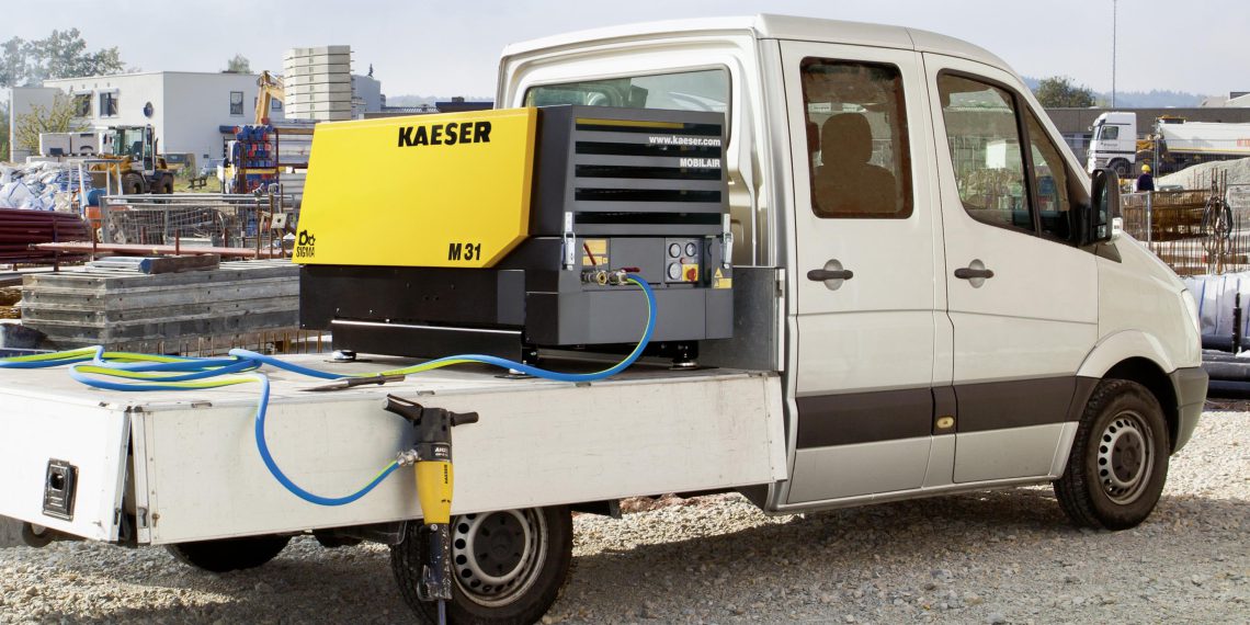 Handlich, leicht, leistungsstark und wirtschaftlich – das sind die herausragenden Merkmale des neuen Baukompressors „Mobilair M 31“. Mit 3,15 m³/min (bei 7 bar) liefert er zuverlässig Druckluft und bietet zudem interessante Optionen: Der Kompressor kann zusätzlich mit einem Generator und/oder integrierter Druckluftaufbereitung geliefert werden. Für spezielle Einsatzarten gibt es neben der straßenfahrbaren auch eine stationäre Version, die sich z. B. gut auf einer Lkw-Ladefläche installieren lässt.