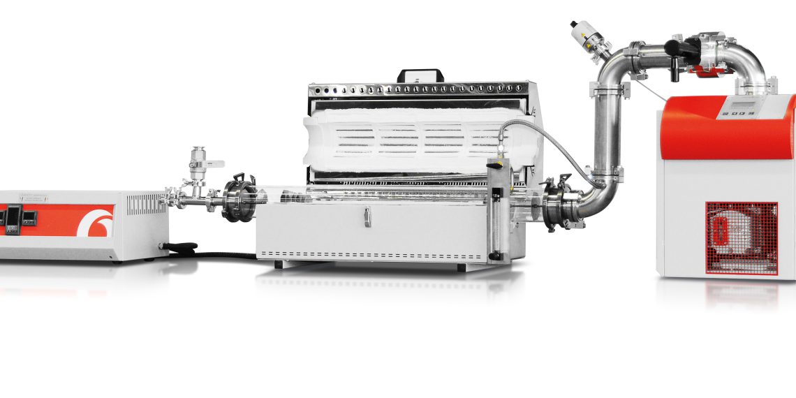Mit einem Turbopumpstand kann ein Vakuum kleiner 5 x10‑5 mbar erreicht werden. In Kombination mit der Schutzgasausstattung ergibt sich somit ein breit aufgestelltes Rohrofensystem, das je nach Ofentyp bis 1500°C unter Hochvakuum und bei bis zu 1800°C unter Schutzgas arbeiten kann. Ein Rohrofen mit einer solchen Gas- und Vakuumausstattung ist eine kostengünstige Variante, um Prozesse bei extremen Bedingungen durchführen und optimieren zu können.