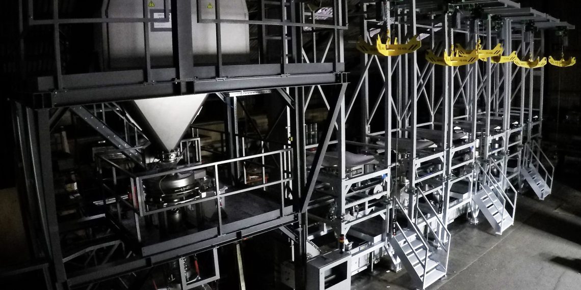 Die Lösung bestand aus einem modularen Aufbau, der in einer separaten Halle der Produktionsstätte von Dinnissen in Sevenum ausgeführt wurde. Dort ist die komplette Anlage — acht Meter hoch — inklusive Verkabelung und Steuerung betriebsfertig montiert worden. Die gesamte Mischanlage besteht aus einer Linie mit sechs Big-Bag Entleerstationen, von wo aus die Rohstoffe über eine Klappe “loss-in-weight” dosiert und mit einem Becherförderer zum Pegasus Mischer weitergeführt werden. Das Endprodukt wird dann in Big-Bags oder Containern abgefüllt.