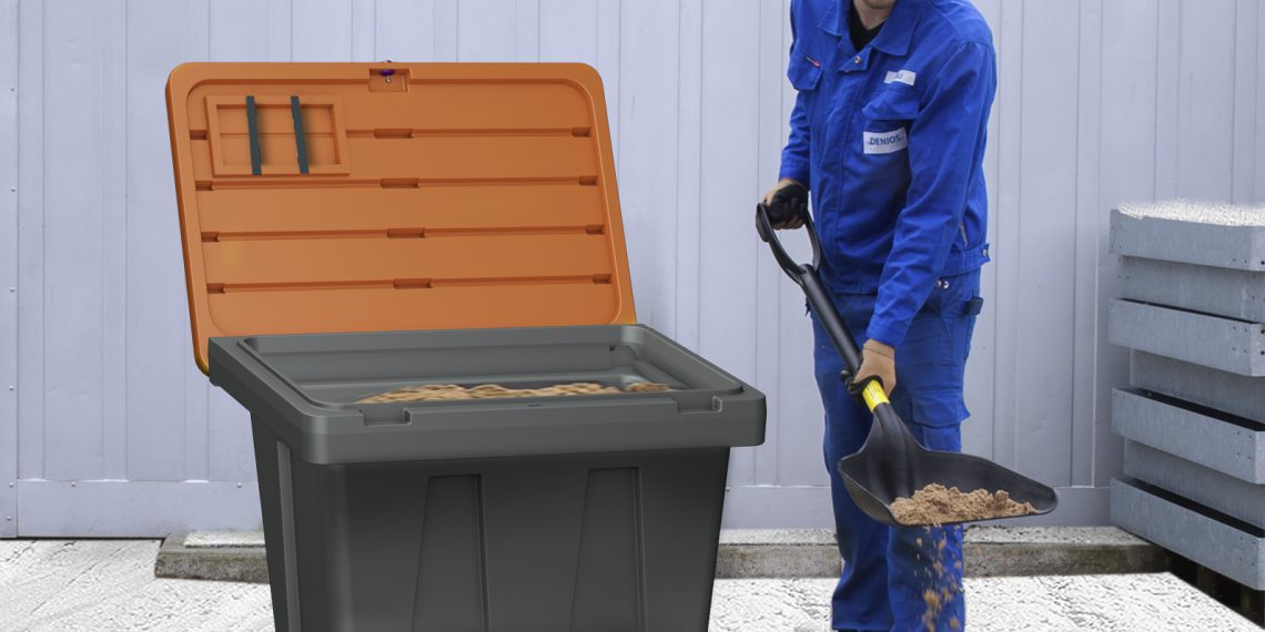 Ab dem 1. November 2016 heißt es wieder: die Sicherheit auf dem Betriebsgelände besonders im Auge behalten. Denn dann startet deutschlandweit die Winterdienst-Saison. DENIOS hat die langjährig bewährte Produktlinie an Streugutbehältern um ein neues Modell erweitert. Der einfache Transport stand bei der Entwicklung im Vordergrund.