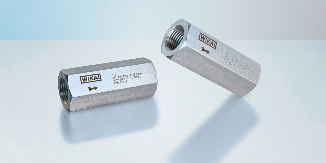 Für vielfältige Einsätze in der Prozessindustrie ist das neue Rückschlagventil Typ CV von Wika ausgelegt. Sein Verschlusssystem mit selbstzentrierendem Kolben verhindert sicher den Rückfluss von flüssigen und gasförmigen Medien.