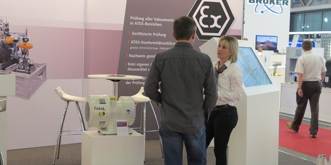 Die Besucher am Messestand konnten sich außerdem über den angebotenen „ATEX-Check“ informieren. Bei diesem Angebot werden die Vakuumanlagen der Kunden in ATEX-Bereichen von den Spezialisten von Busch überprüft. Die Besucher zeigten sich beeindruckt von den Vorteilen, die ein solcher Check für Sie bietet. Neben einer langfristig gesicherten Archivierung der Prüfergebnisse entfallen für die Kunden sämtliche Aufwände für Prüfmittel sowie Messmittel und die Dokumentation.