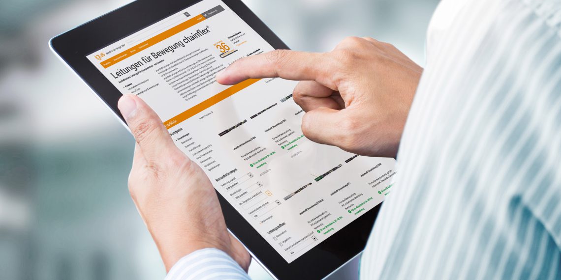 Die Suche nach dem passenden Produkt nimmt aufgrund einer hohen Angebotsvielfalt und einer großen Menge an Daten häufig viel Zeit in Anspruch. Um Informationen schnell und einfach verfügbar zu machen, hat igus seine chainflex Website für e‑ketten Leitungen durch den Einsatz von neuen Filtern und einer intuitiven Seitennavigation weiter verbessert. Der Kunde kann dort nicht nur die richtige Leitung für seine Anwendung schnell finden und diese im Online-Shop bestellen, sondern hat auch die einzigartige Möglichkeit die Lebensdauer der ausgewählten Leitungen direkt online zu berechnen.