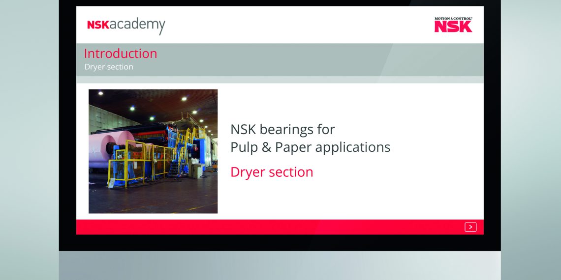 Das Schulungsangebot der NSK academy wird um ein neues Trainingsmodul für die Zellstoff- und Papierindustrie erweitert. Der informative Kurs konzentriert sich auf die Trockenpartie von Papierherstellungsmaschinen und wendet sich an alle, die Wälzlager für diese anspruchsvolle Anwendung auswählen, spezifizieren oder instandhalten. Teilnehmer, die den Kurs mit mindestens 80% der erreichbaren Punktzahl abschließen, erhalten ein Zertifikat.