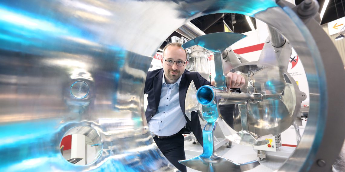 Dipl.-Ing. Stefan Ruberg, Geschäftsführer der Amixon GmbH mit Sitz in Paderborn, stellt sich auf diese vielfältigen Anforderungen mit punktgenauen Lösungen ein: „In der Batterieherstellung geht es beispielsweise darum, dass die Aufbereitungsaggregate keine metallische Oberfläche aufweisen dürfen, um jegliche Kontamination mit Metallpartikeln auszuschließen. Bei der Aufbereitung keramischer Farben lautet eine Hauptforderung ‘Hygiene und Chargentreue’. Bei der Vakuum-Mischtrocknung und bei der Finalvermischung müssen Produkt-verschleppungen vermieden werden.“