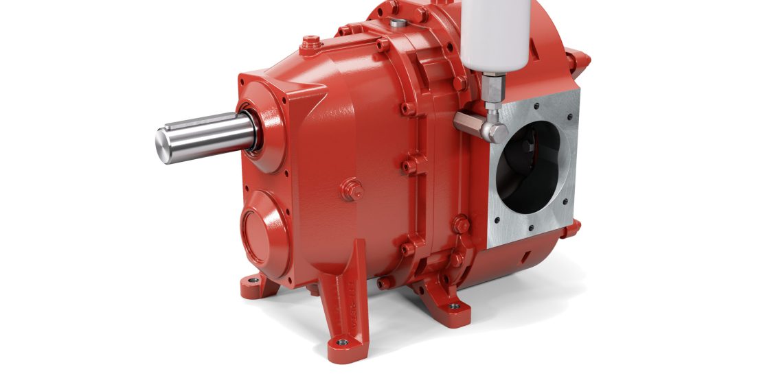 Die Drehkolbenpumpen der EP-Serie bestehen aus einem einteiligen Gehäuse und besitzen ein Hochleistungsgetriebe, das eine konstante Druckabgabe von bis zu 18 bar ermöglicht – das ist bislang einzigartig auf dem Markt. Schrägverzahnte Zahnräder im Getriebe sorgen für eine hohe Laufruhe und reduzieren die Lärmemission. Die pulsationsfreie Förderung verringert zudem den Verschleiß der angrenzenden Rohrleitung auf ein Minimum. Durch die hohe Druckleistung und Temperaturgrenze von 200 Grad Celsius sowie die Dichtungsvielfalt ist die EP-Serie auch für Anwendungsbereiche wie die Öl- und Gasindustrie, die petrochemische Industrie sowie in Tanklägern geeignet. Für eine hohe Betriebssicherheit hat Vogelsang die EP-Serie zusätzlich mit einem AirGap ausgestattet. Dieser Luftspalt trennt Getriebe und Pumpenkammer atmosphärisch voneinander. So gelangt selbst bei einer Leckage keine Flüssigkeit in das Getriebe, sondern fließt nach außen ab. Gleichzeitig schützt der AirGap das Getriebe bei der Förderung heißer Medien.
