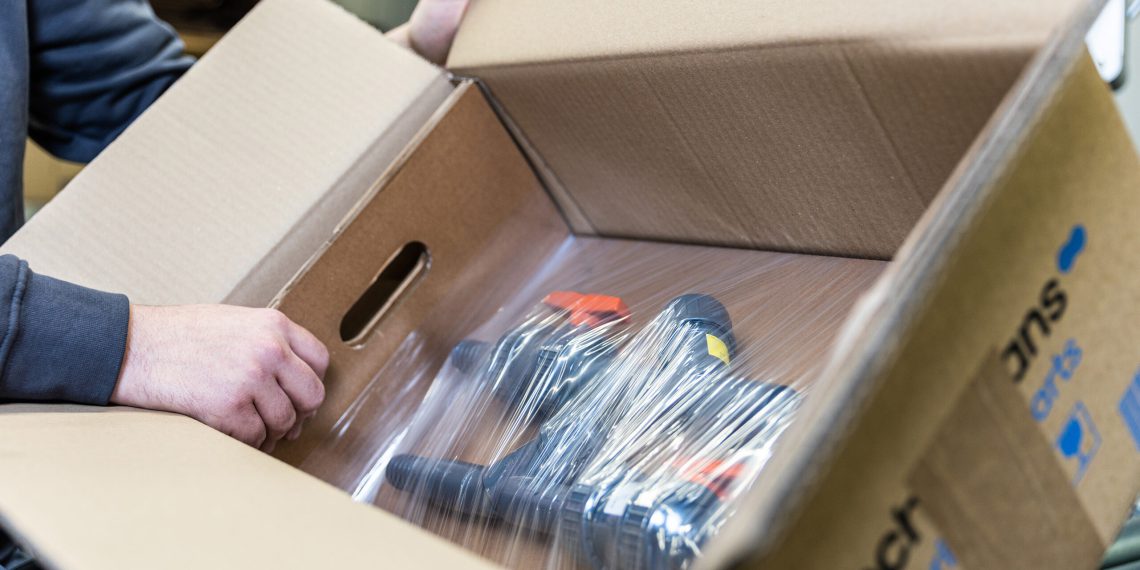 Bei der technotrans systems in Baden-Baden legt das Unternehmen den Schwerpunkt auf die Verpackungen für Gerätelieferungen. Wo früher herkömmliche PE-Schaum-Platten die Produkte beim Transport schützten, kommen heute ECO-PE-Schaum-Platten zum Einsatz. Dadurch sinkt der Kohlenstoffdioxid-Fußabdruck in diesem Bereich um 95 Prozent – und zwar von 2,51 Kilogramm Kohlenstoffdioxid per Kilogramm Verpackungsmaterial auf 0,13 Kilogramm Kohlenstoffdioxid per Kilogramm. Ein großer Vorteil, der sich für die Umwelt auszahlt, wie Adrian Butaru, Leiter Logistik technotrans systems, betont: „Preislich sind wir auf dem gleichen Niveau, aber die Ökobilanz ist deutlich besser.“