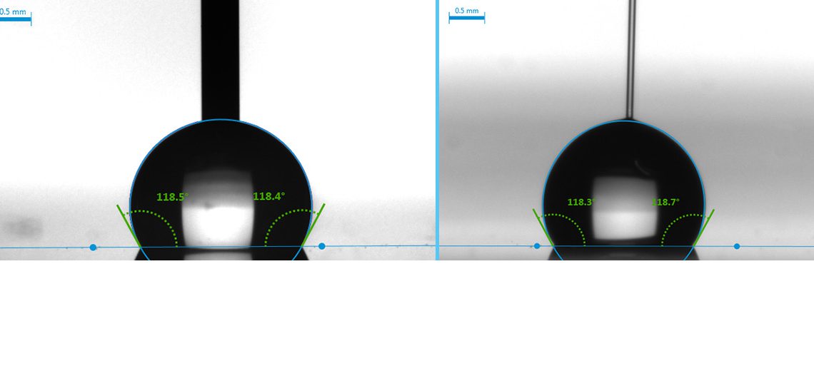 Im Rahmen der Studie wurden Kontaktwinkel auf 14 verschiedenen Materialien mit der neuartigen Druckdosierung und der klassischen Nadel-Dosiertechnik gemessen. Mit einem breiten Spektrum von hydrophoben und hydrophilen, rauen und glatten sowie chemisch reinen und technischen Oberflächen deckt die Untersuchung alle praxisrelevanten Fälle ab. Die Ergebnisse der fachbegutachteten Veröffentlichung zeigen durchweg eine gute Übereinstimmung zwischen den Kontaktwinkelergebnissen beider Dosiermethoden.