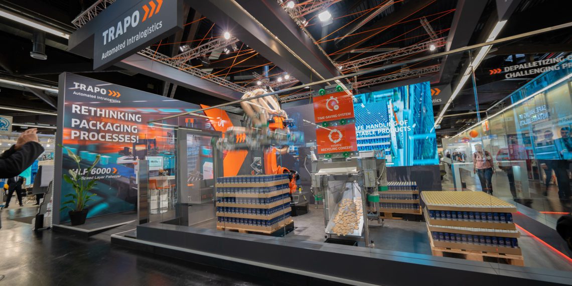 Was ein Schuhlöffel mit dem kompakten Hochleistungs-Lagenpalettierer HLP 6000, dem Flaggschiff unter den Palettierlösungen von TRAPO, gemeinsam hat? Auch diese Anlage fügt sich dank modularer Bauweise passend in jedes Produktionsumfeld ein. Vergessen sind folglich Platzprobleme, denn der HLP, der sich mit drei Basisvarianten vorstellt, kann bei Bedarf sogar in zweiter Ebene agieren. Hochzufrieden zeigte sich das Team um Area Sales Manager Thorsten Lütke vom Erfolg der aktuellen Fachpack-Präsenz, die unter dem Motto „Rethinking Packaging Processes“ stand.