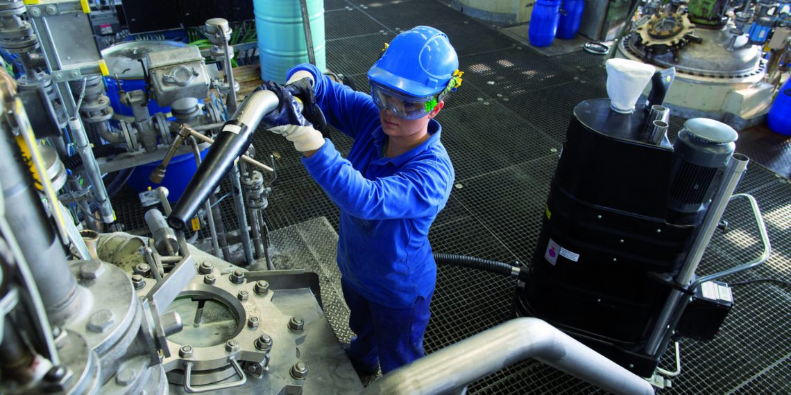 Ex-Sauger von Ruwac sind durch ihre schwarze Gehäusefarbe gekennzeichnet – die „normalen“ Industriesauger sind rot. Die ATEX-konformen Geräte kommen in vielen Chemiebetrieben zum Einsatz, aber auch in der Lebensmittelverarbeitung und anderen Bereichen der Prozessindustrie. Sie sorgen zum Beispiel für Sauberkeit und Prozesssicherheit bei der Produktion und Verarbeitung von Kunststoffen und Additiven sowie bei der Abfüllung von pulverförmigen bzw. staubenden Nahrungsmitteln wie Kaffee, Müsli und Puddingpulver. Ein typischer Einsatzfall für Gas-Ex-Absauganlagen ist die Herstellung von Synthesegasen.