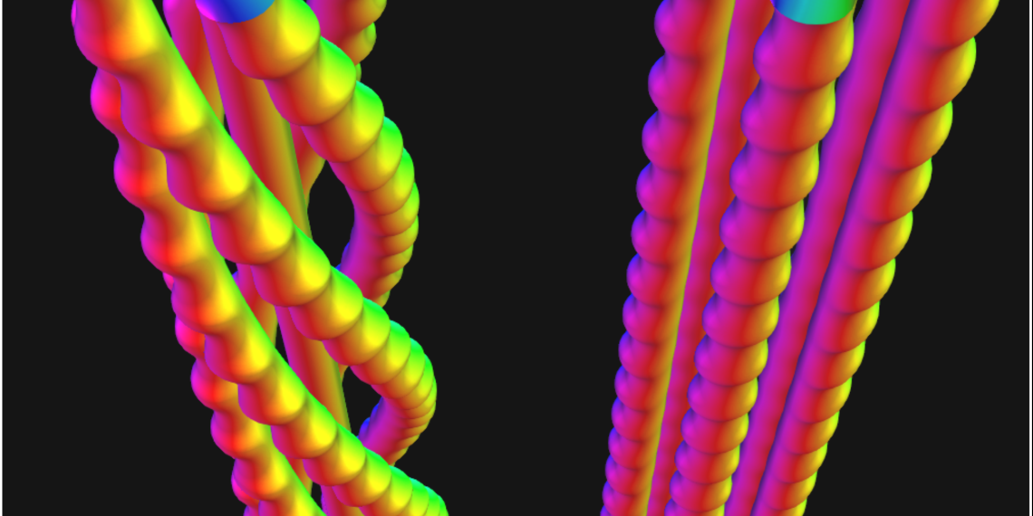 Die Nanoschnüre bestehen aus jeweils mehreren Skyrmionen, die mehr oder weniger stark miteinander verdrillt sind, wie die Stränge eines Taus. Skyrmionen wiederum bestehen aus magnetischen Momenten, die in unterschiedliche Richtungen zeigen und zusammen die Form eines langgezogenen winzigen Wirbels einnehmen. Jeder einzelne Skyrmionstrang hat weniger als einen Mikrometer Durchmesser. Die Länge der Magnetstrukturen wird nur durch die Dicke der Proben begrenzt; sie reichen von einer Oberfläche der Proben bis zur gegenüberliegenden.