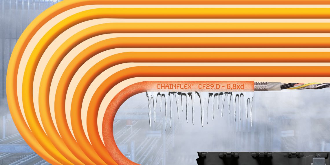 Ein für die Bewegung optimierter Aderaufbau in Kombination mit einem zwickelfüllend extrudierten TPE-Innenmantel, der für noch mehr Stabilität sorgt, sowie ein hochbiegefester TPE-Außenmantel – dieses sind Merkmale der neuen chainflex Servoleitungs-Serie CF29. Die High-End-Serie eignet sich für kleinste Biegefaktoren bei Servoleitungen bis zu 6,8xd und ist damit einzigartig am Markt. Die neue Serie kann in einem Temperaturbereich von ‑35°C und damit sogar bei bewegten Anwendungen in Tiefkühllagern als garantiert sichere Lösung eingesetzt werden. Möglich wird das vor allem durch den igus Außenmantel-Werkstoff TPE halogenfrei, der eine nahezu uneingeschränkte Ölbeständigkeit bietet. Schon seit Jahren kommt dieser bei anderen chainflex Leitungsserien zum Einsatz. Um seinen Kunden nun eine noch bessere Auswahl zu ermöglichen, erweitert igus sein High-End-Angebot nun auch um diese neue Servoleitungs- sowie eine weitere Daten- und eine Busleitungs-Serie.