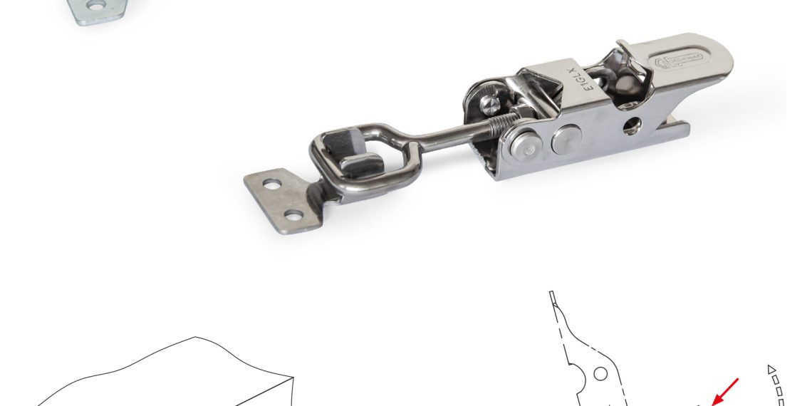 Der Hersteller ergänzt die neue Spannverschluss-Reihe gleich mit einer Sicherheits-Variante: Bei GN 761.1 rastet am Ende der Schließbewegung der, im Grundkörper integrierte, Sicherungshaken selbstständig in den Betätigungshebel ein. Damit bleibt der Spannverschluss sicher verschlossen und öffnet sich nicht ungewollt. Erst wenn der Sicherungshaken wieder explizit entriegelt wird, kann der Verschluss geöffnet werden.