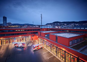 Das 2015 erbaute GAZ Jena ist die Einsatzbasis von 300 Mitarbeitern aus Feuerwehr, Rettungsdienst und Verwaltung. Betreiber des Gebäudeareals ist ...