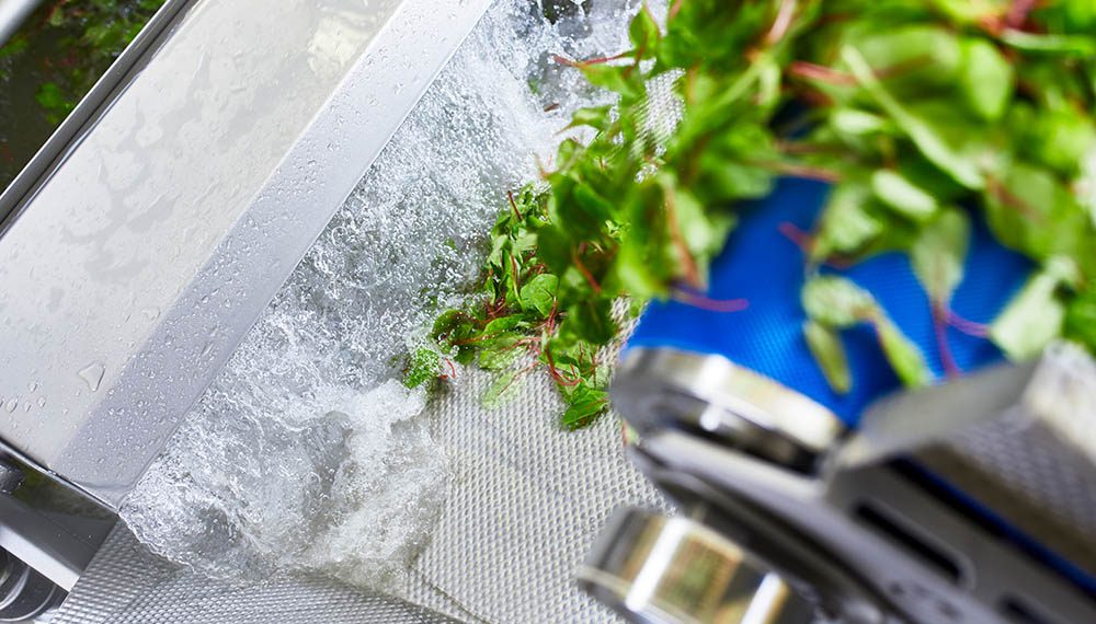 Auf der Anuga Foodtec zeigt Kronen auf seinem Messestand in diesem Jahr mit der K650 beziehungsweise K850 die erweiterte Produktfamilie der Großzentrifugen. Die Trocknungssysteme sind für die Verarbeitung von großen Mengen an geschnittenem Salat, Gemüse und Obst konzipiert. Darüber hinaus führt das Unternehmen im neuen virtuellen Showroom Innovationen vor, darunter eine Verarbeitungslinie, mit der, auf dem neuesten Stand von Technik und Hygiene, bis zu 1.000 Kilogramm Baby Leaf pro Stunde verarbeitet werden können.