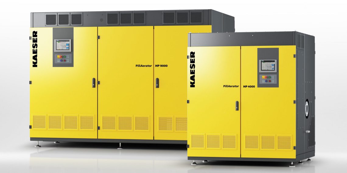 Turbogebläse von Kaeser Kompressoren, Typ Pillaerator eignen sich optimal für Belüftungsprozesse mit großem Luftbedarf in der biologischen Wasseraufbereitung. Dank modernster Technik bieten sie einen zuverlässigen und energieeffizienten Betrieb und ermöglichen dadurch niedrige Lebenszykluskosten. Die energieeffizienten Gebläse mit Volumenströmen von 50 bis 275 Kubikmeter pro Minute und Differenzdrücken bis 1,3 bar kommen überall dort zum Einsatz, wo Prozessluft für Anwendungen im Niederdruck benötigt wird. Das Turbo-Gebläse ist ideal geeignet für große Luftmengen zur Belüftung bei der Aufbereitung von Abwässern im industriellen und kommunalen Bereich. Bei industriellen Anwendungen kommt es ebenso zum Einsatz wie zum Beispiel bei der Flotation, Fermentation, Fluidisierung bis hin zur Erzeugung von Blasluft mittels Air Knives.
