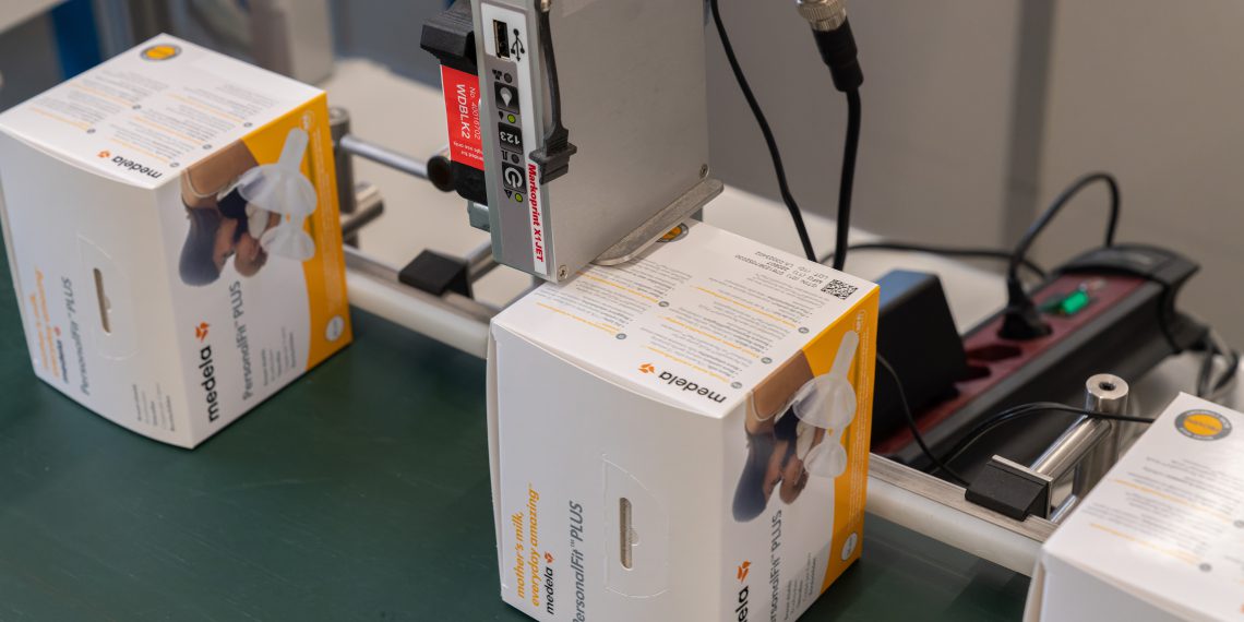 Mit dieser Anforderung wandten sich Christoph Weber und sein Team an den Kennzeichnungsanbieter Bluhm Systeme. Bluhm empfahl ein thermisches Inkjet-Drucksystem, das die Daten automatisch in einen zweidimensionalen Code verschlüsselt und alle Druckinformationen blitzschnell und abriebfest auf die Produkte aufbringen kann. Der Drucker vom Typ Markoprint X1JET ist kompakt und daher schnell und einfach einsetzbar.